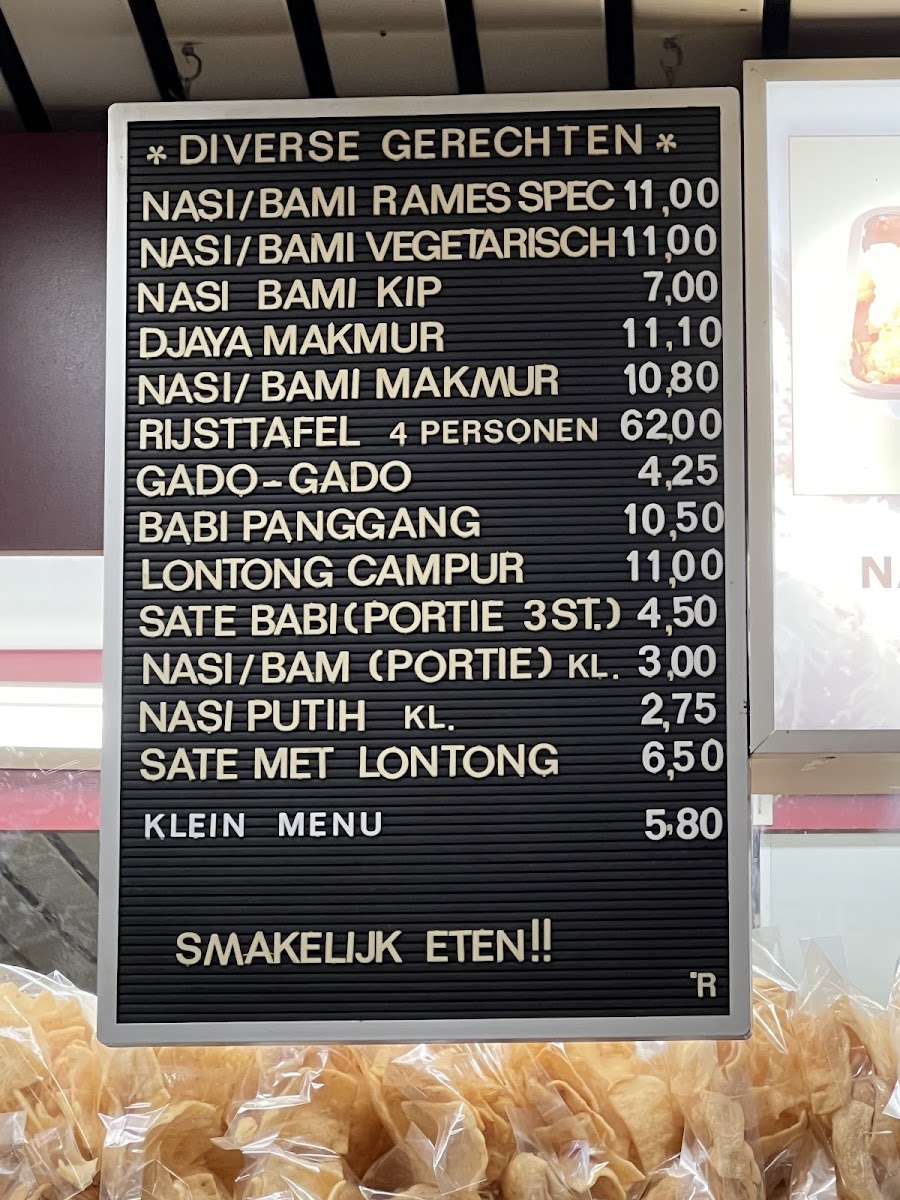 The menu at Toko Djaya Makmur offers a vibrant selection of traditional Indonesian dishes, each bursting with rich flavors and aromatic spices. Among the highlights are the Nasi Rames Speciaal, a generous plate featuring a variety of meats, rice, and flavorful sides, creating a well-balanced and satisfying meal. Another standout is the Rendang Smoor Pastei Kip, a tender chicken stew cooked in a deep, spicy rendang sauce that brings out the complexity of the dish. These dishes, along with other traditional offerings, provide a true taste of Indonesia, making Toko Djaya Makmur a perfect destination for those seeking authentic and bold flavors.